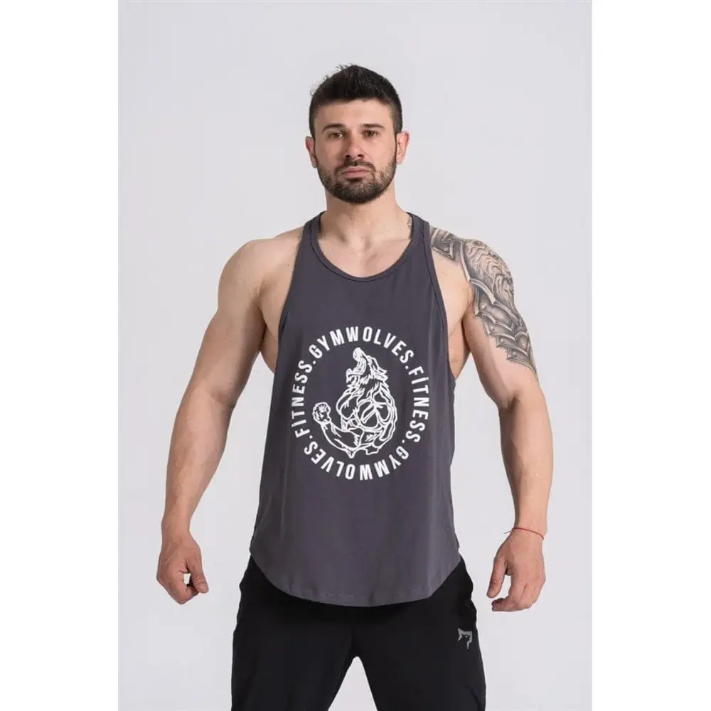 Gymwolves Man Sport Stringer Smoked | Workout Tanktop | Wolf Series |